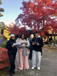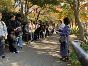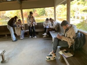 紅葉の季節の自然に包まれた日本庭園での散策や自律的な調べ学習、発表はとても特別な体験となりました。